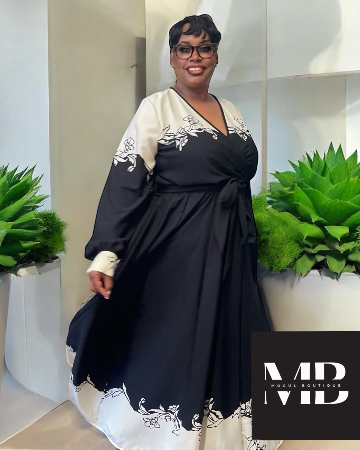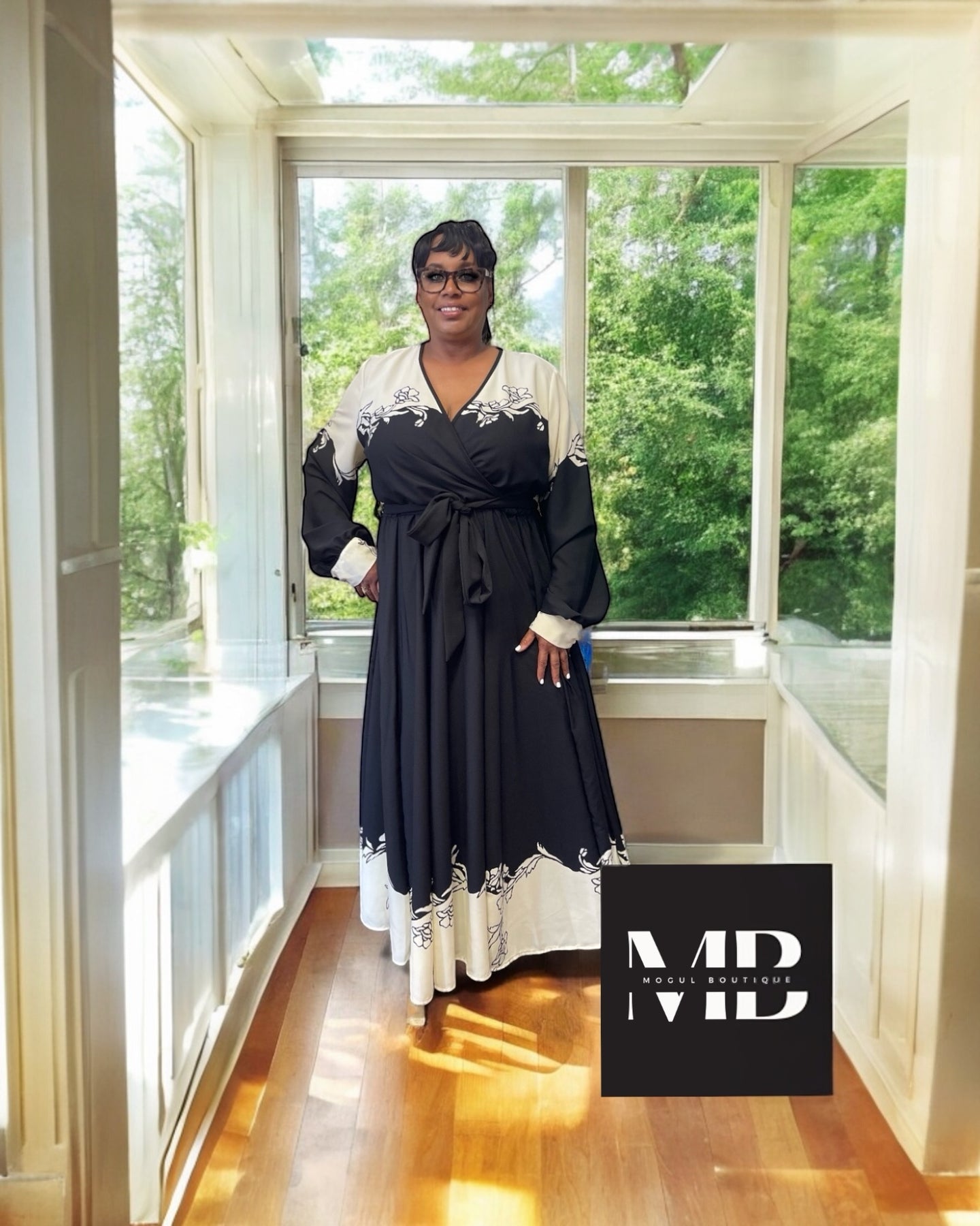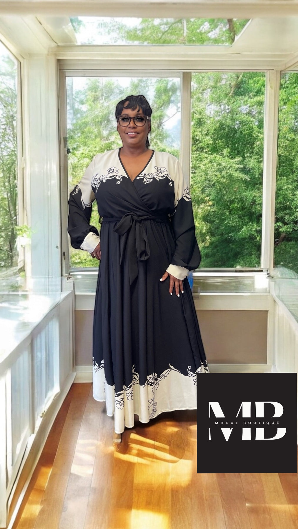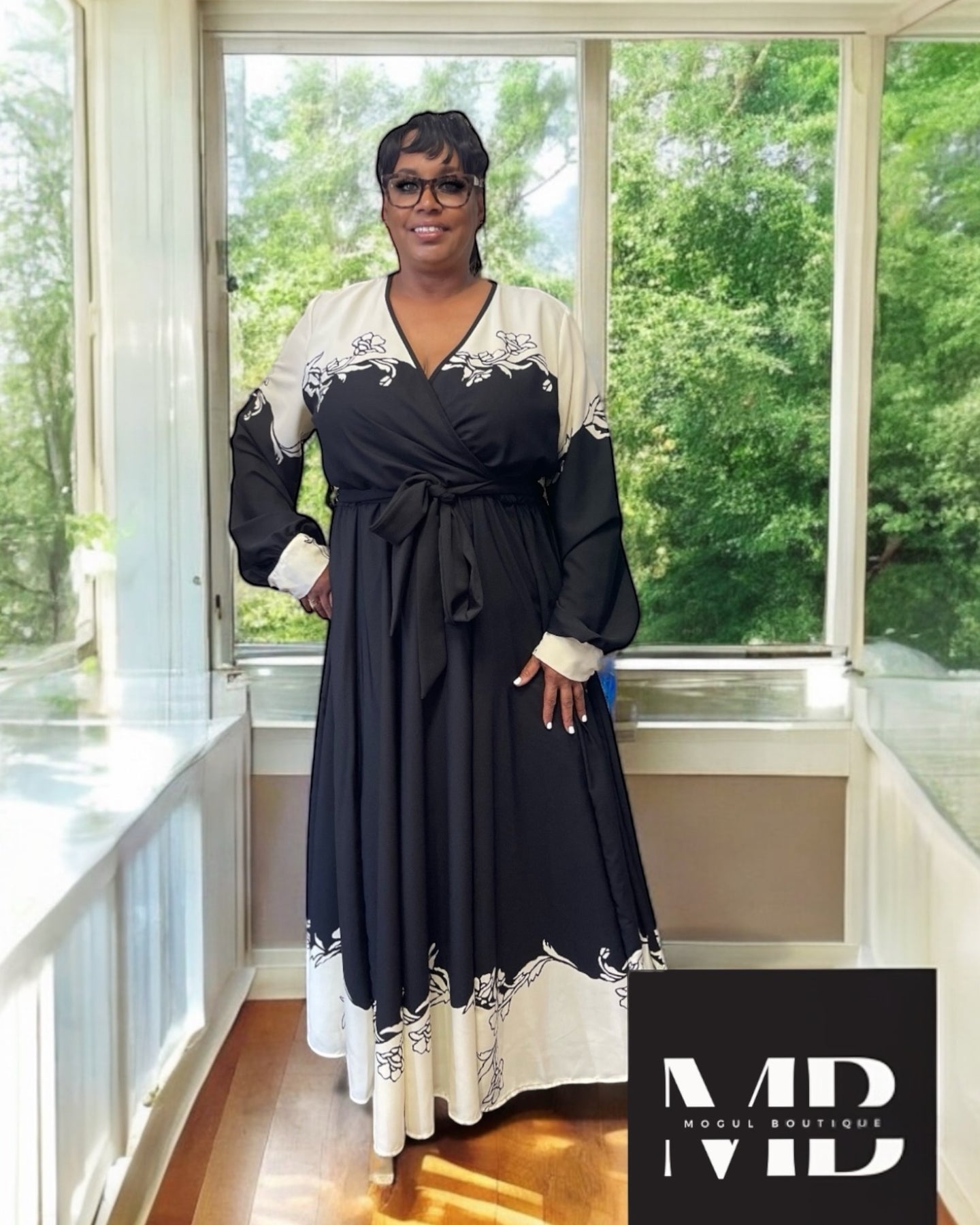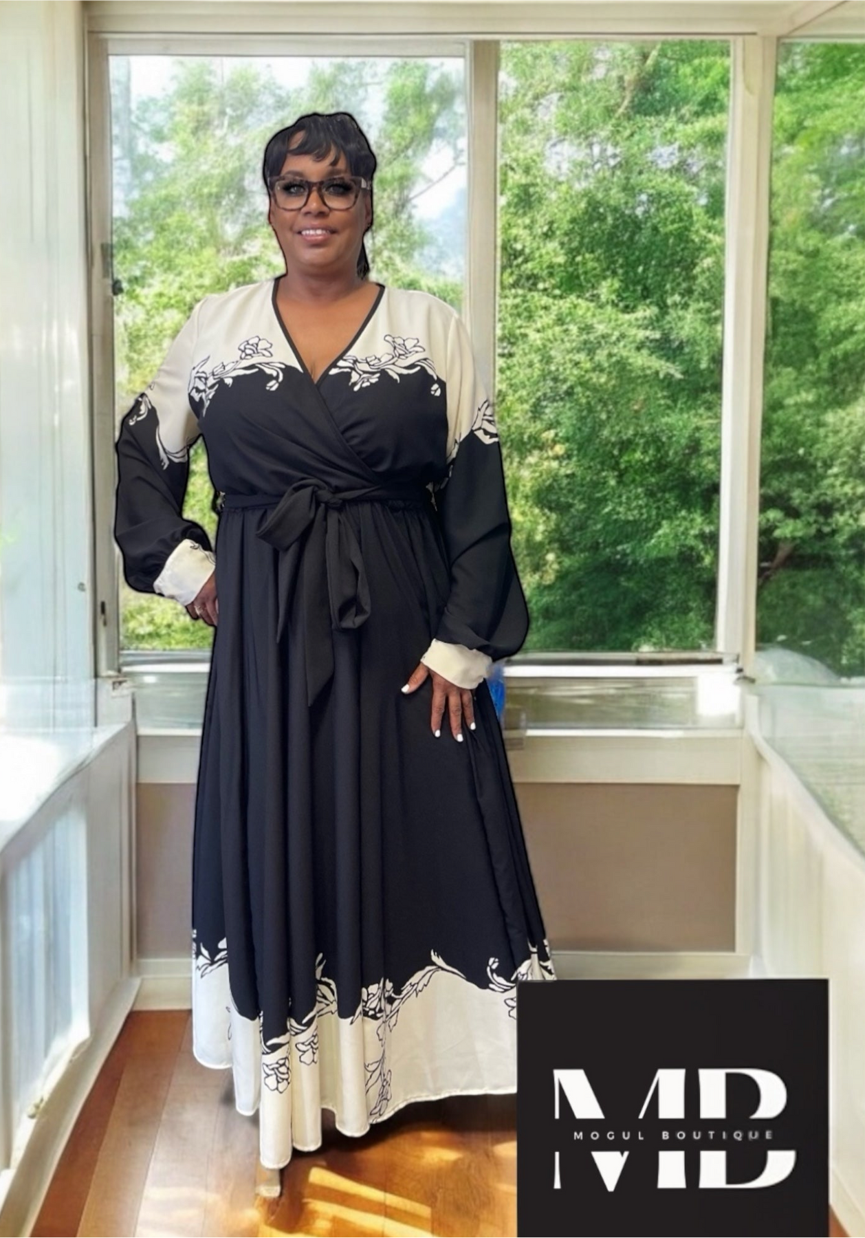 This black plus size maxi comes with a floral pattern belt at the waist and is specifically made for plus size individuals. It is a final sale and is designed to fit true to size.