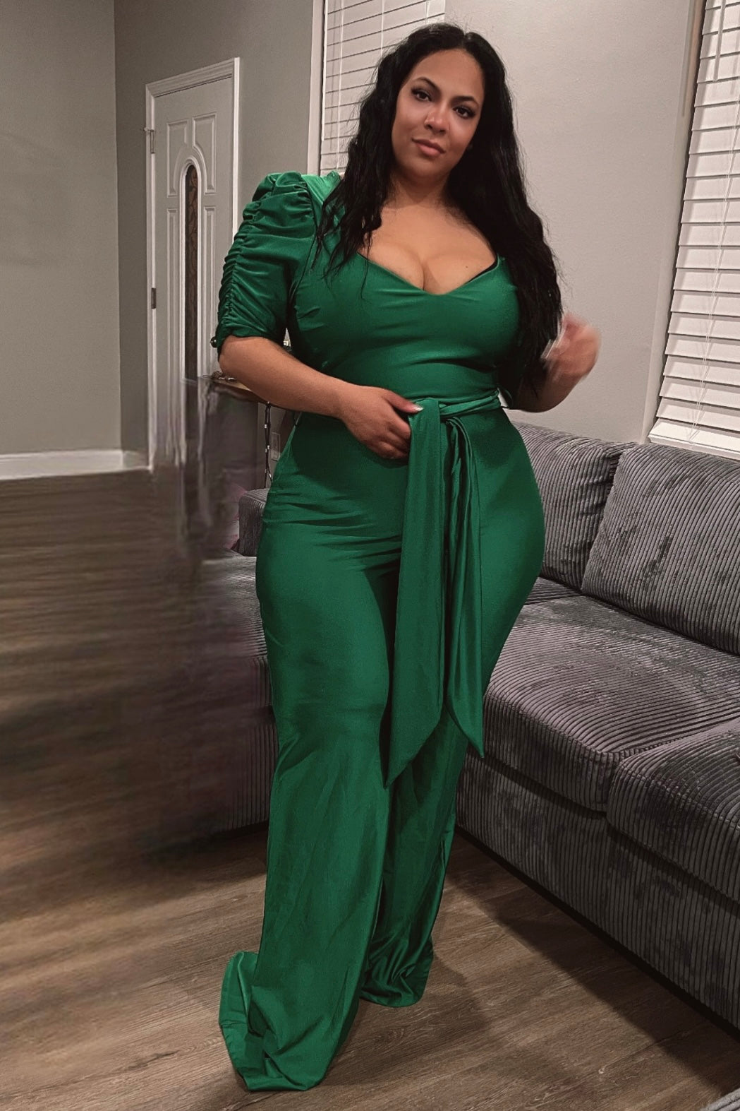 Curvy Style Gucci Green Jumpsuit w/attached belt.