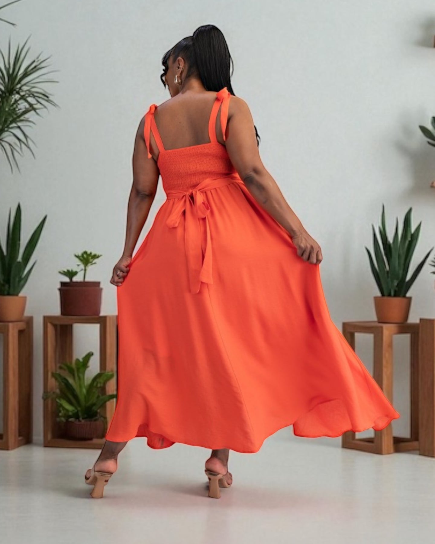 Effortlessly elegant and oh-so-comfortable, our Coral Maxi Dress is the versatile dress you need in your wardrobe. The woven fabric, square-cut smocked back, and fit + flare silhouette flatter any figure, while the self-tie shoulder straps and back add a touch of playful charm. Plus, with side pockets for added convenience, this casual linen dress is perfect for any occasion.