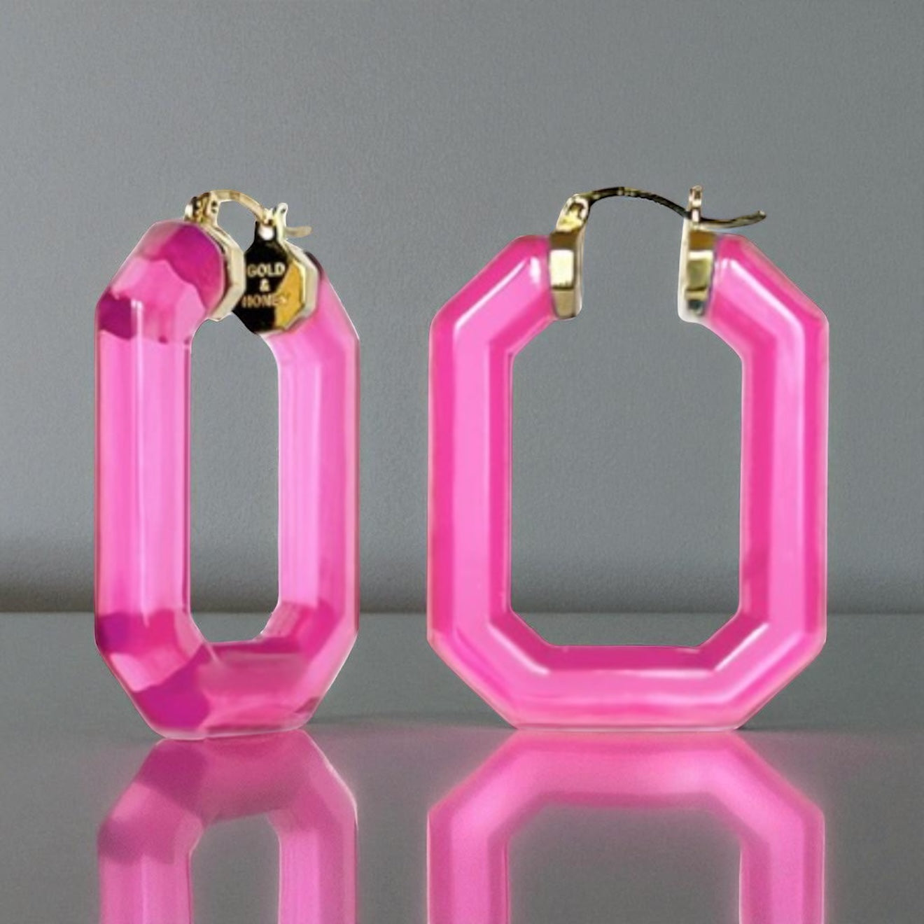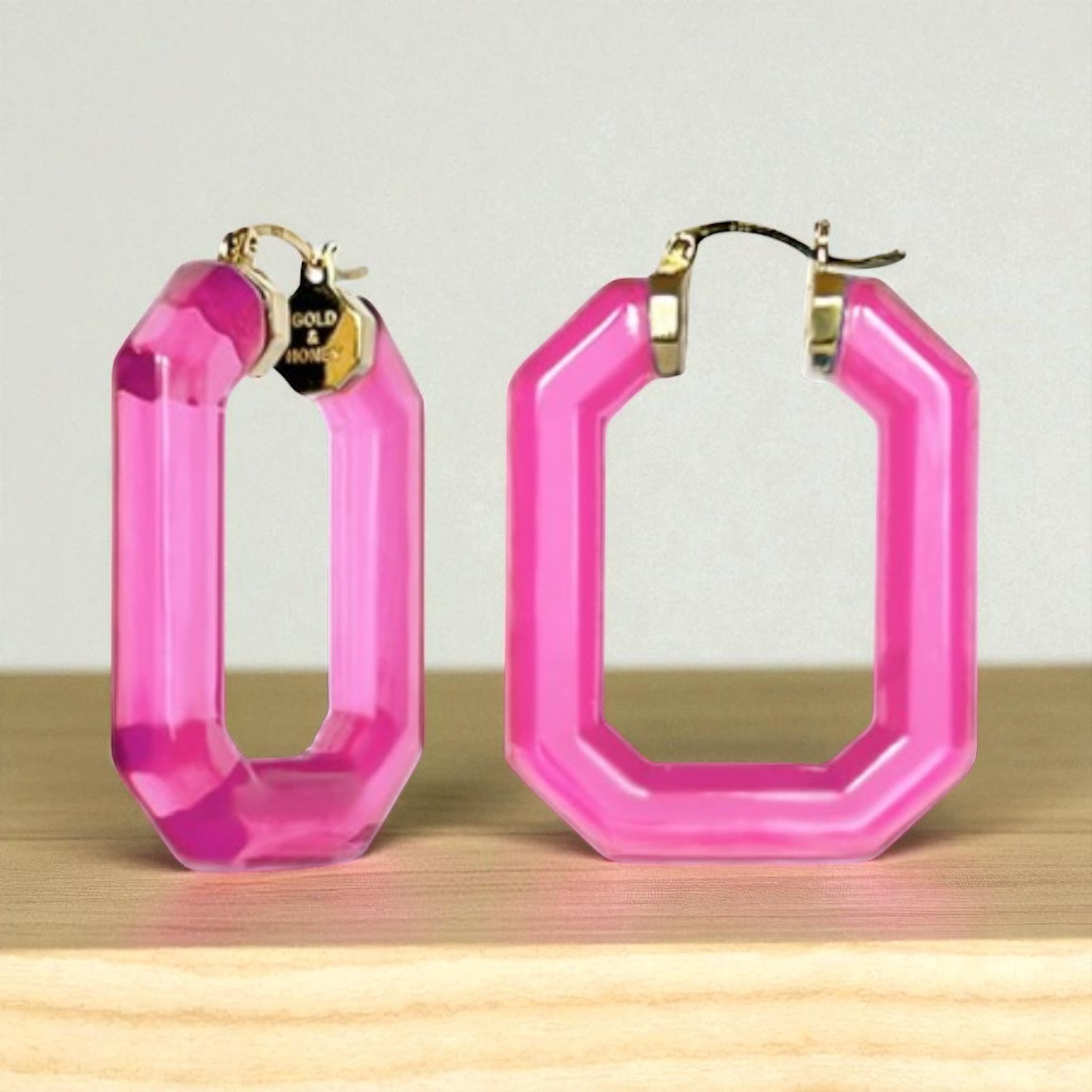 - As a product expert, here's why you'll love these Emerald Cut Gemstone Lucite Hoop Earrings In Pink.